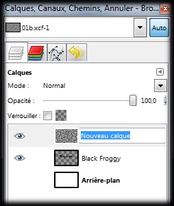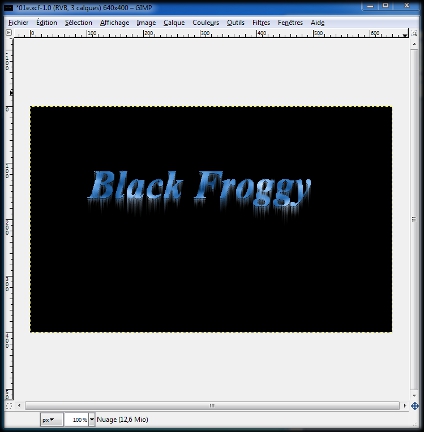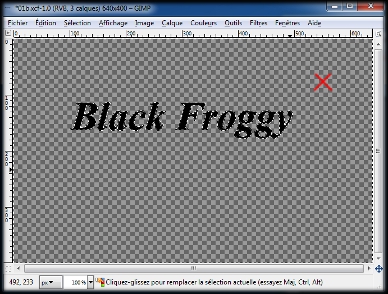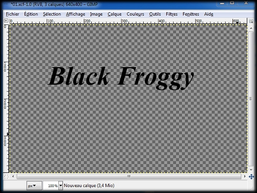 Il n'est maintenant plus visible sur notre image,et nous avons de nouveau notre tout premier calqueoù nous avions rentré notre texte.(Black Froggy) (img23)