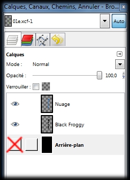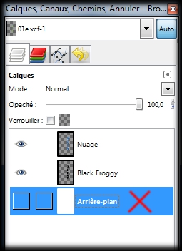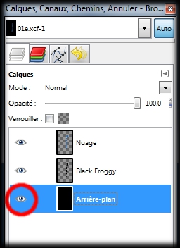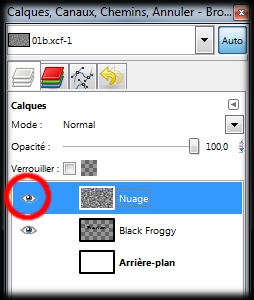 Dans la boite des calques, déactivez la visibilité du calque Nuage(un clic gauche sur l'oil du calque nuage). (img33a)