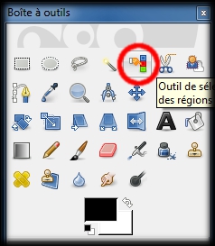 Dans la boite des calques un clic gauche sur le calque Black Froggy, puis dans la boite à outils un clic gauche sur l'outil de sélection par couleur, (img35)