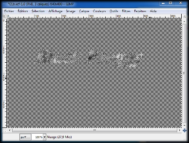 Il ne nous reste plus qu'à sélectionner ce calque. Dans la boite des calques un clic gauche sur son nom : Nuage, puis la touche de votre clavier : Suppr.Il ne reste sur notre image que notre texte écrit dans un nuage. (img38)