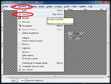 Pour finir dans la boite de l'image un clic gauche sur le menu : Sélection, et un clic gauche sur : Aucune. (img39)