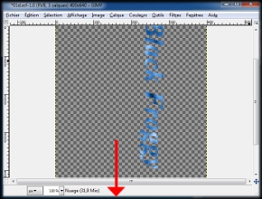 et enfin dans notre image un clic gauche sur la zone transparenteà coté du texte, (img36) des pointillés sont apparu qui délimitent notre sélection autour de notre texteainsi qu'autour de notre imagecar nous avons sélectionné la zone transparente de notre calque.