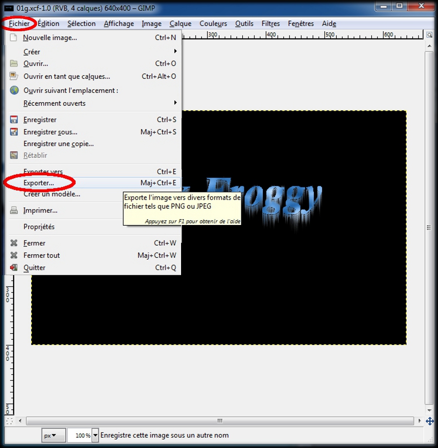 Dans le menu de la boite image, un clic gauche sur : Fichier , puis un clic gauche sur : Exporter (img63a)
