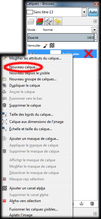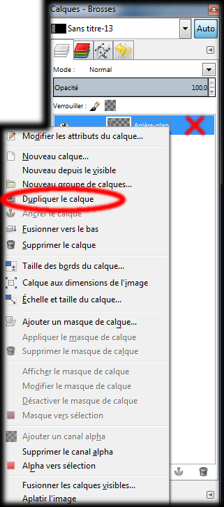 Toujours dans la boite des calques un clic droit sur le calque Arrière-plan,puis un clic gauche sur