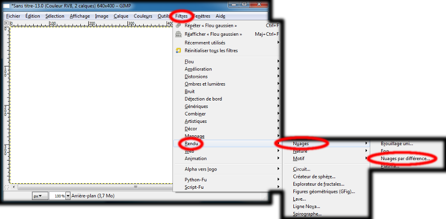 Rendu, puis sur Nuages, et un clic gauche sur Nuages par différence. (img07)