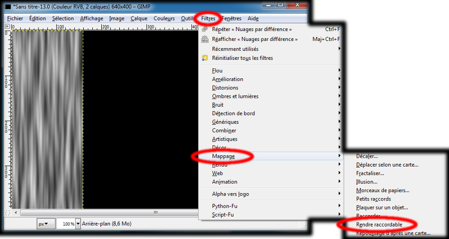 Dans la boite de notre image, un clic gauche sur le menu Filtre, placez le curseur de votre souris sur