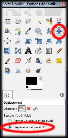 Dans la boite à outils sélectionnez l'outil de déplacement