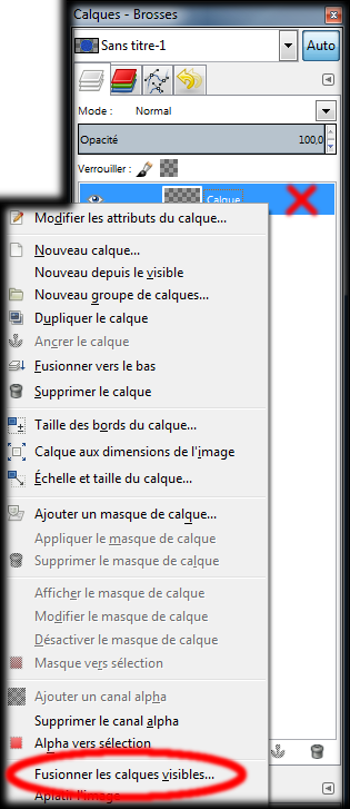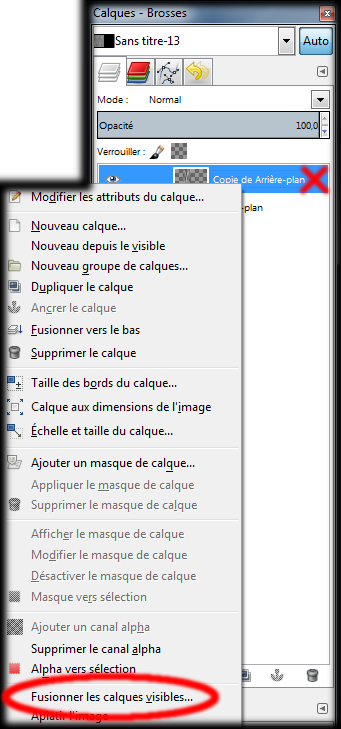 Dans la boite des calques, un clic droit sur le calque 01,et un clic gauche sur Fusionner les calques visibles. (img33)