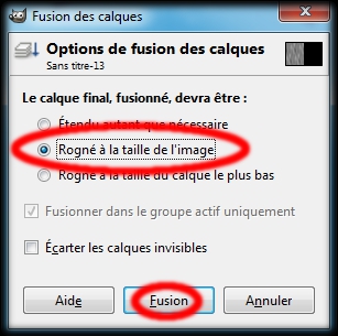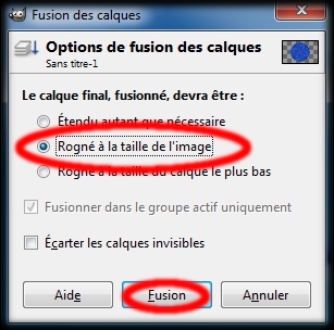 Dans la boite Fusion des calques, sélectionnez Rogné à la taille de l'image,