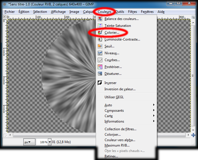 Dans la boite de notre imageun clic gauche sur le menuCouleurs,et un clic gauche sur